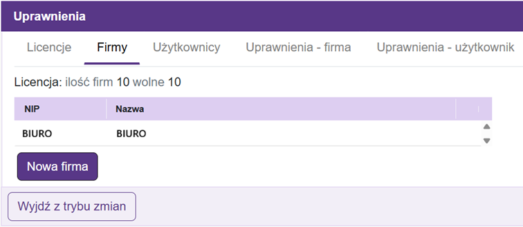 2. Utwórz bazę firmy klienta w zakładce Firmy, klikając w Nowa firma.