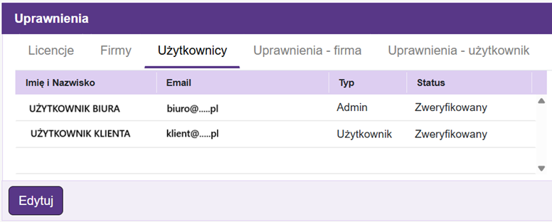 Kliknij w poniższej tabeli w nazwę użytkownika klienta, a następnie w ikonę ołówka.